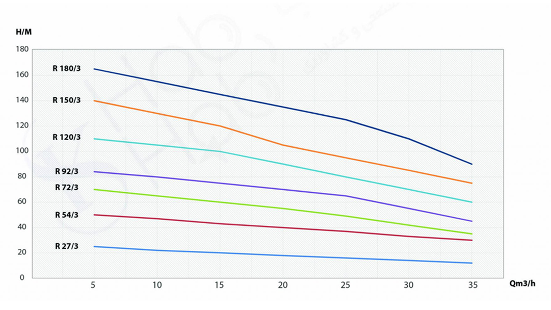 جدول نمودار آبدهی کفکش های 3 اینچ سه فاز رهاب پمپ