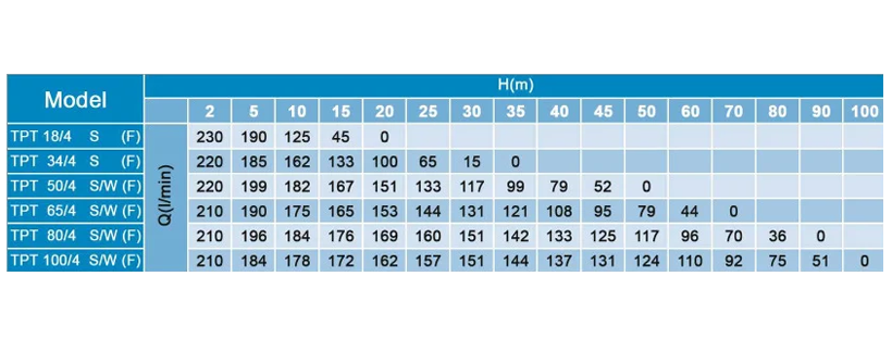 جدول نمودار آبدهی کفکش 1/4-1 اینچ خروجی از بالا توان تک