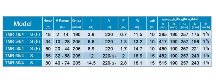 پمپ های کفکش توان تک در دو مدل خروجی بالا با پیشوند TPT و خروجی بغل با پیشوند TMR می باشد.